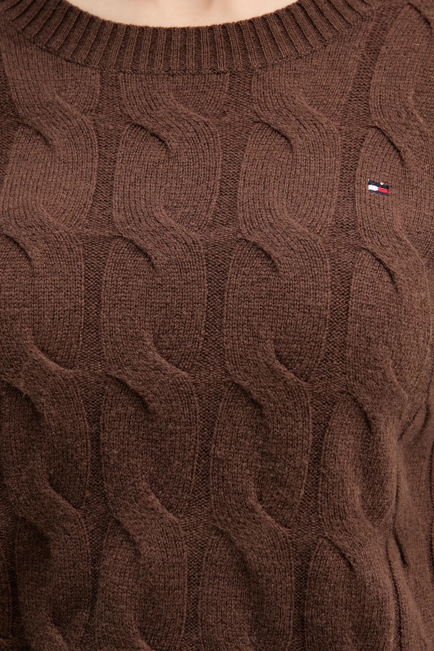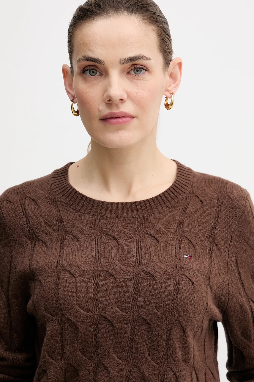 Tommy Hilfiger sweter wełniany damski kolor brązowy lekki WW0WW43586