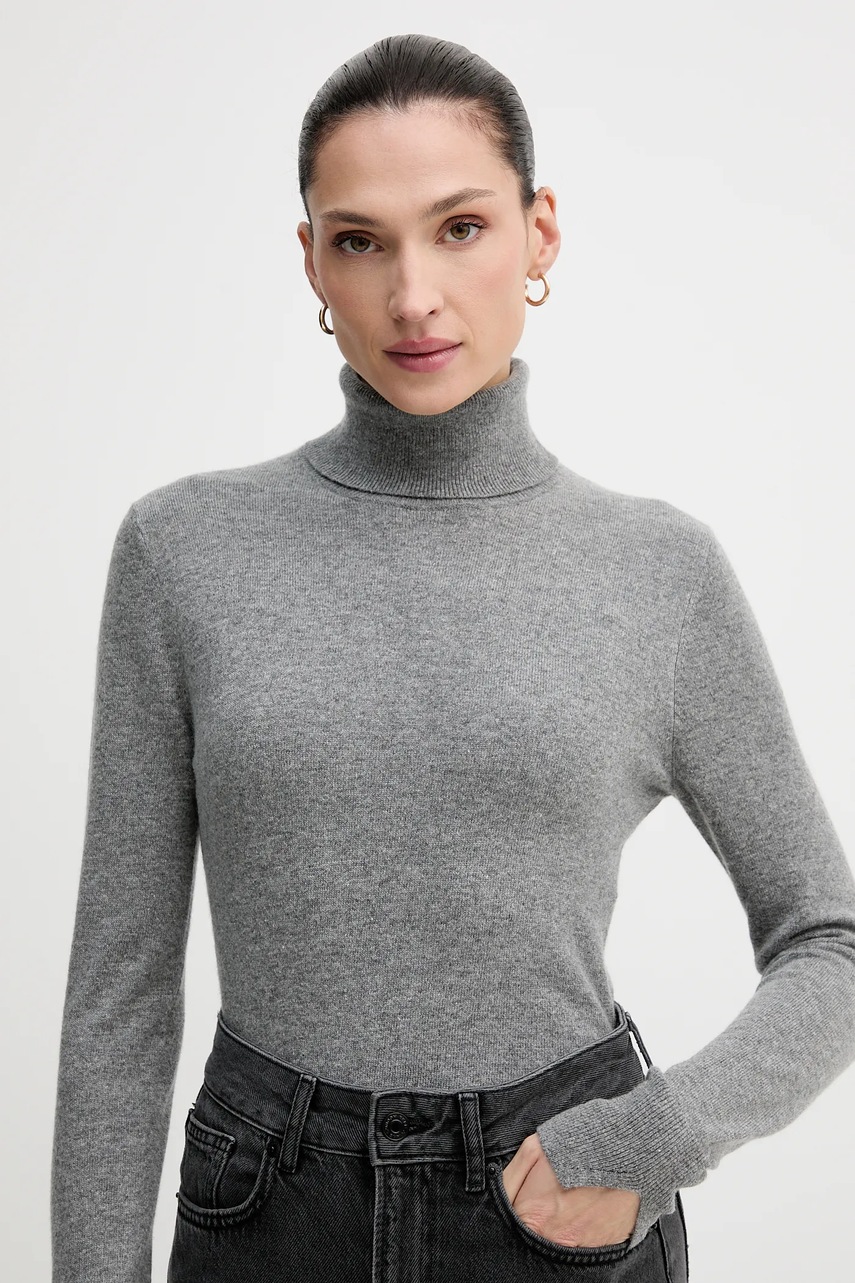 Sisley sweter z domieszką wełny damski kolor szary lekki z golfem 102HM2174