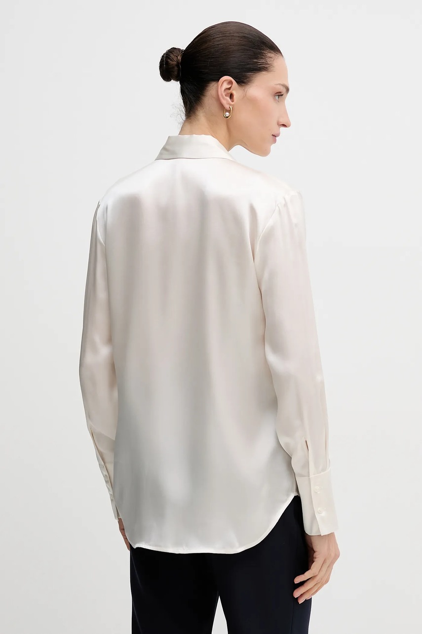 Sisley koszula jedwabna kolor beżowy regular z kołnierzykiem klasycznym 5LZMLQ05E