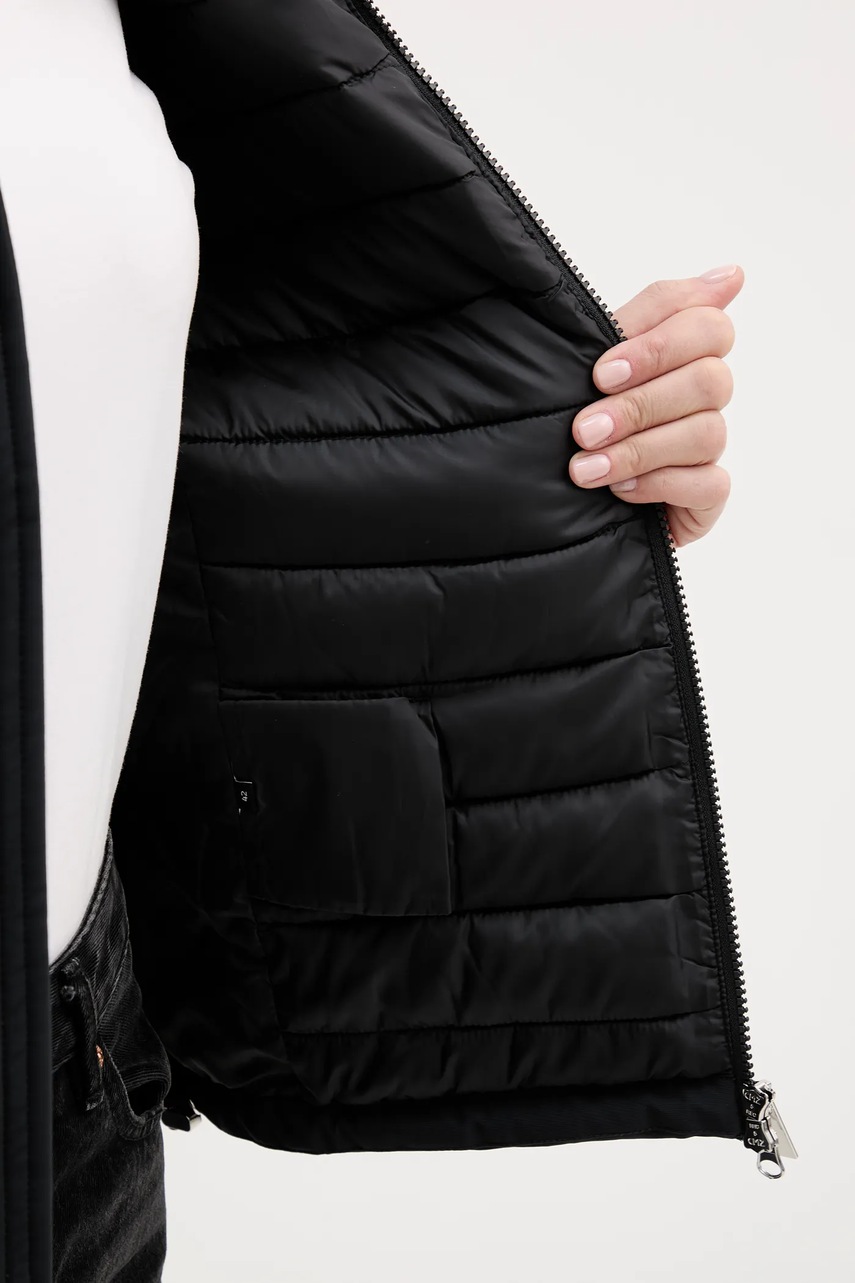 - Podwyższony kołnierz i nieodpinany kaptur gwarantują dodatkową ochronę przed chłodem.