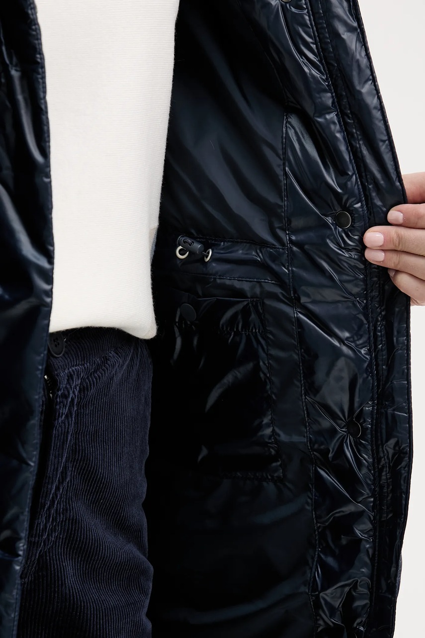 - Podwyższony kołnierz i nieodpinany kaptur gwarantują dodatkową ochronę przed chłodem.