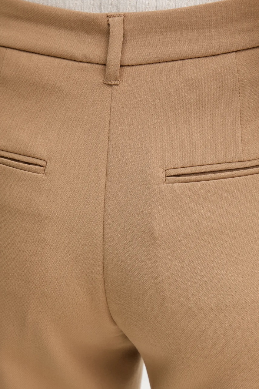 - Model z podwyższoną talią i zapięciem na suwak, guzik i haftki.