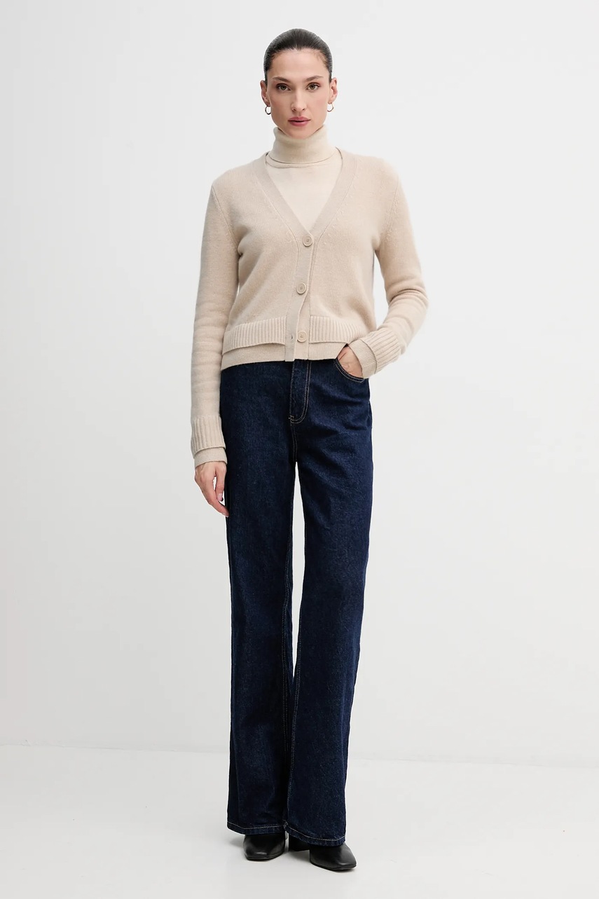 Sisley kardigan z dodatkiem wełny damski kolor beżowy lekki 122WL602S