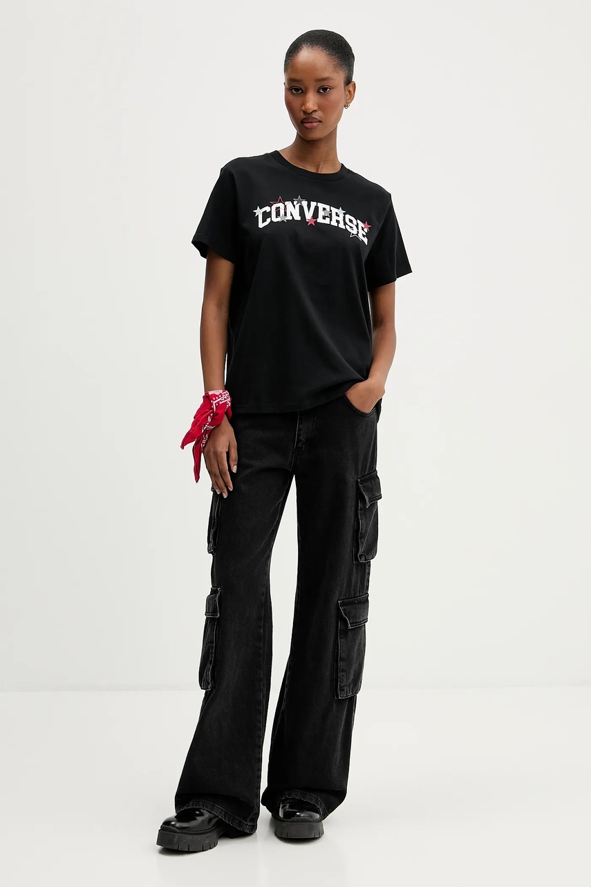 Converse t-shirt bawełniany damski kolor czarny CVW5T026