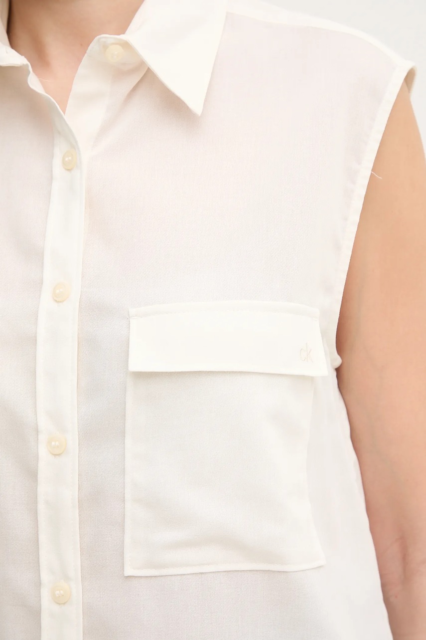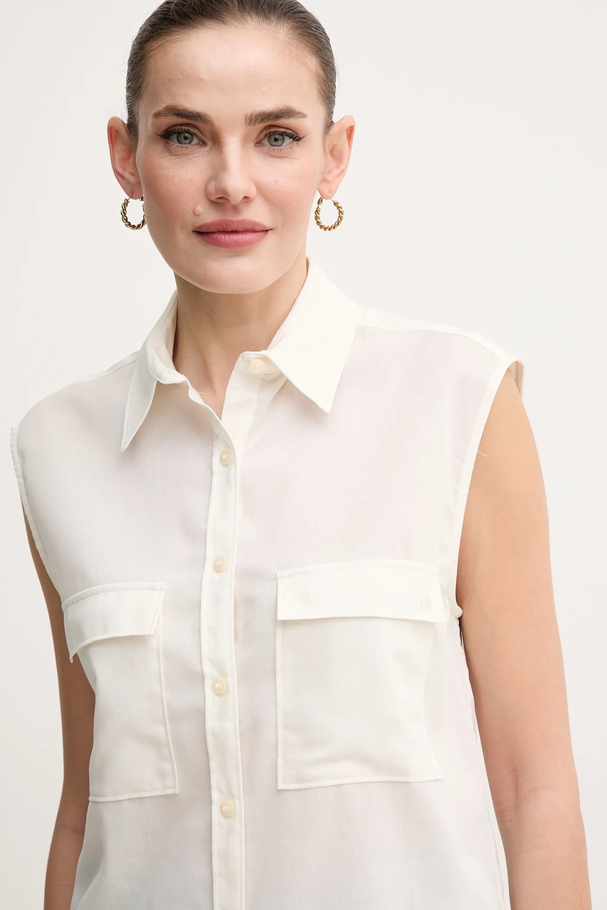 Calvin Klein koszula bawełniana damska kolor beżowy regular z kołnierzykiem klasycznym K20K208224