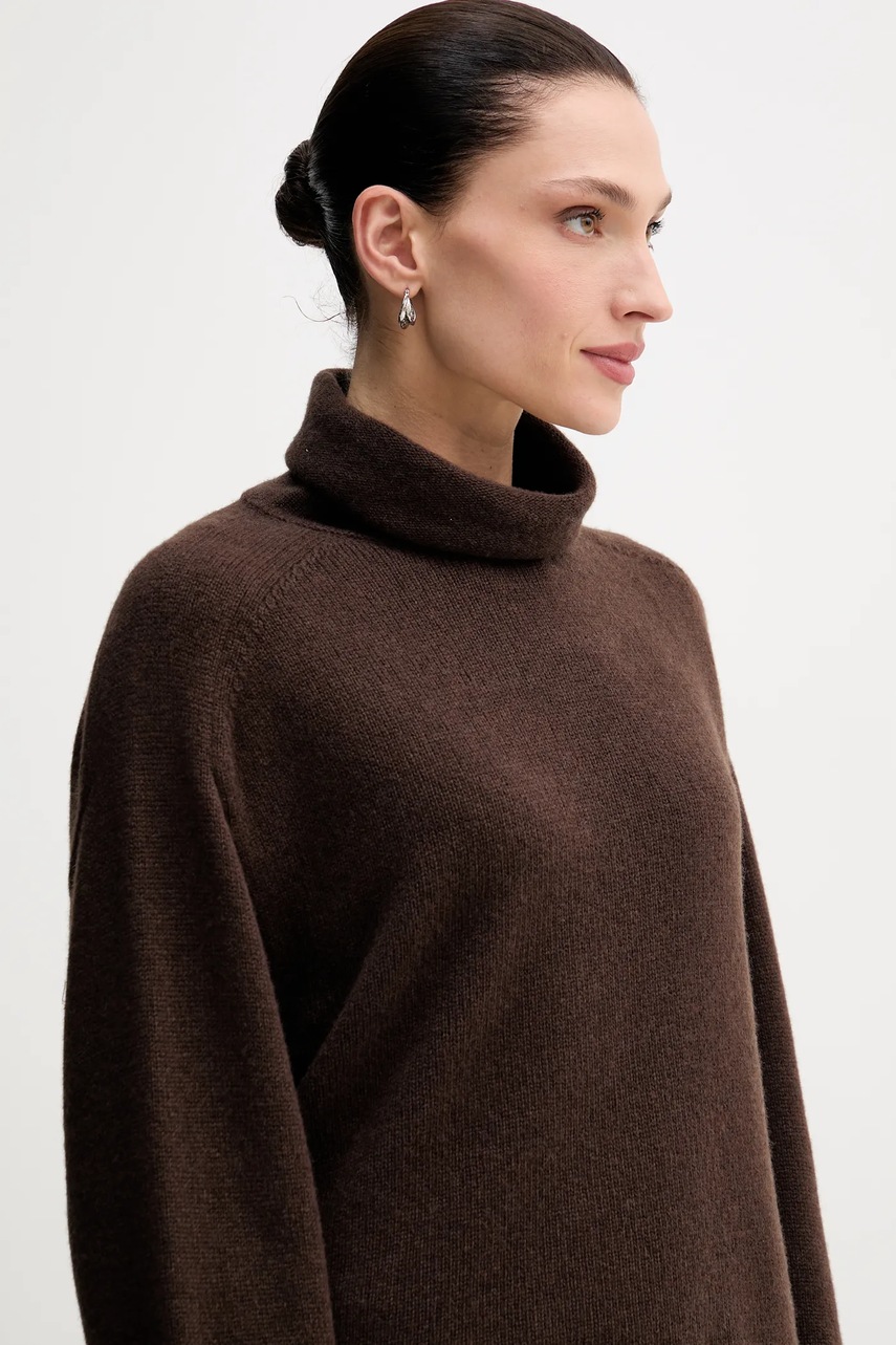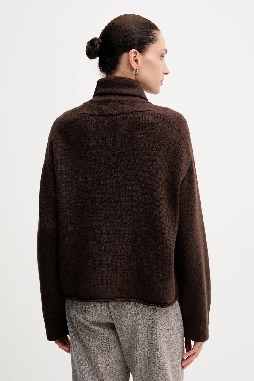 Marc O'Polo sweter z dodatkiem wełny kolor brązowy z golfem 510609060267