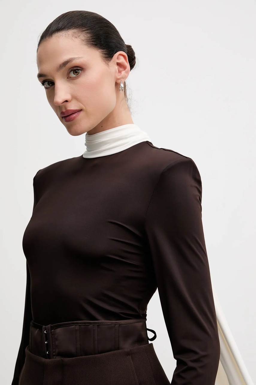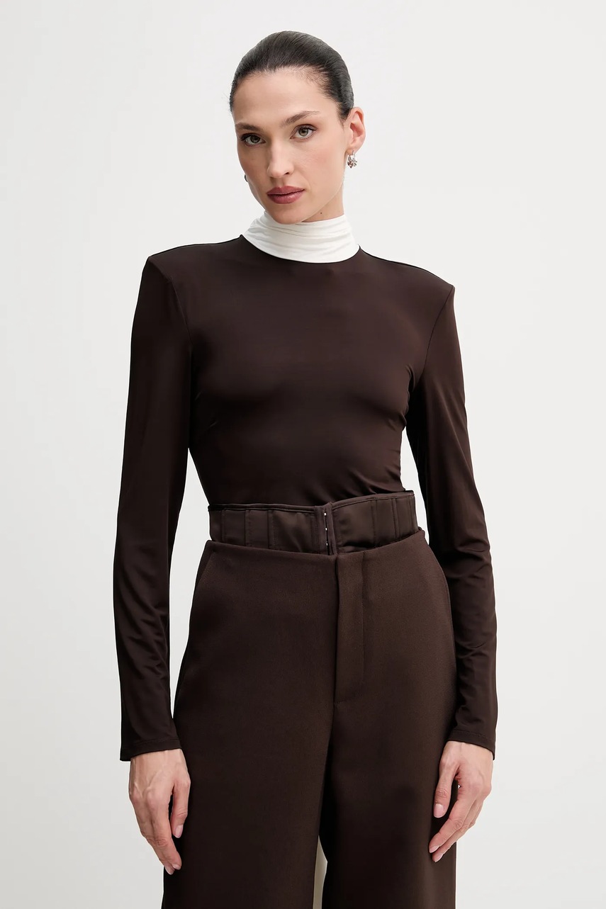 Rotate bluzka damska kolor brązowy gładka 1149673065
