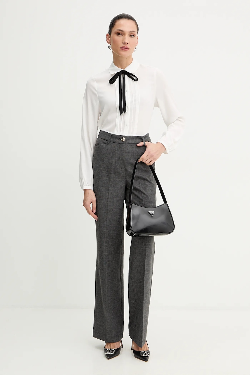 Morgan spodnie damskie kolor szary proste high waist PTARY.F