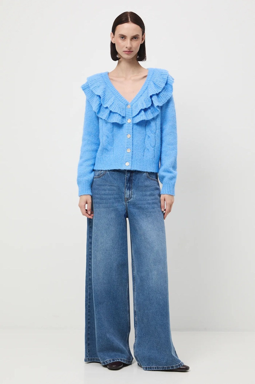 - Kardigan w fasonie regular zapewnia wygodę i uniwersalny wygląd. Delikatnie dopasowuje się do sylwetki, ale nie podkreśla jej nadmiernie. Klasyczny i prosty, sprawdzi się zarówno w eleganckich, jak i casualowych stylizacjach.