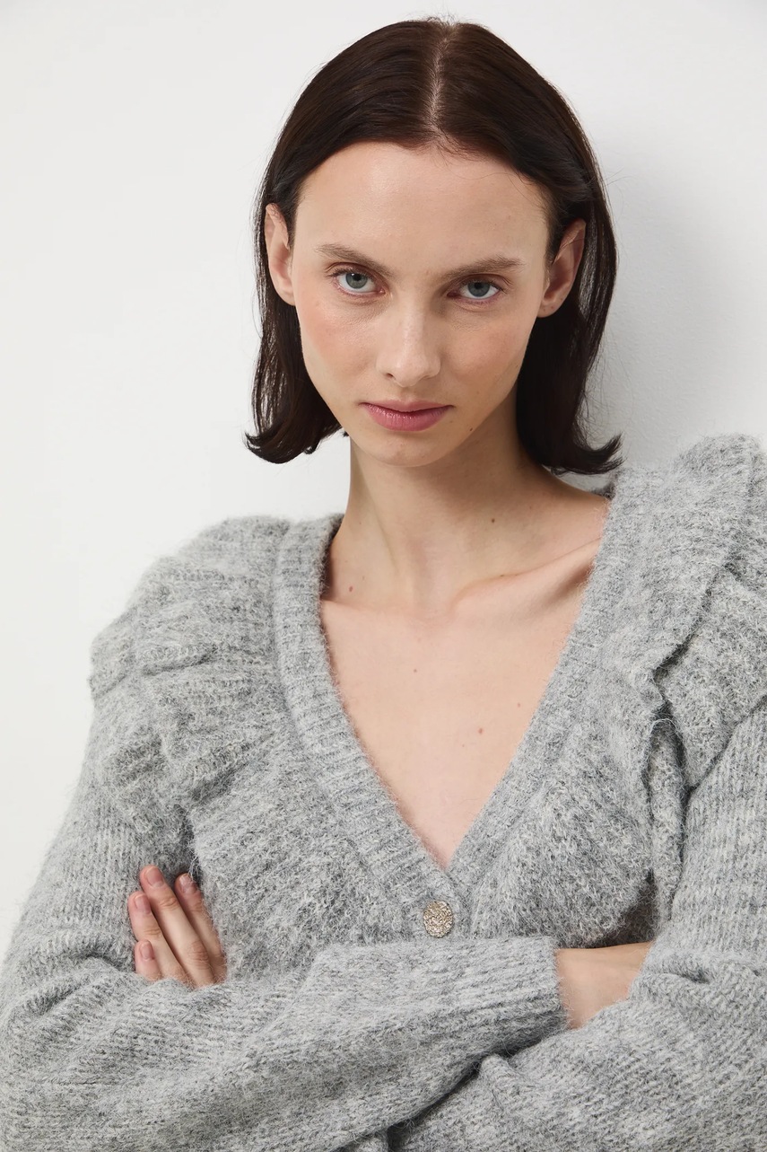 - Kardigan w fasonie regular zapewnia wygodę i uniwersalny wygląd. Delikatnie dopasowuje się do sylwetki, ale nie podkreśla jej nadmiernie. Klasyczny i prosty, sprawdzi się zarówno w eleganckich, jak i casualowych stylizacjach.