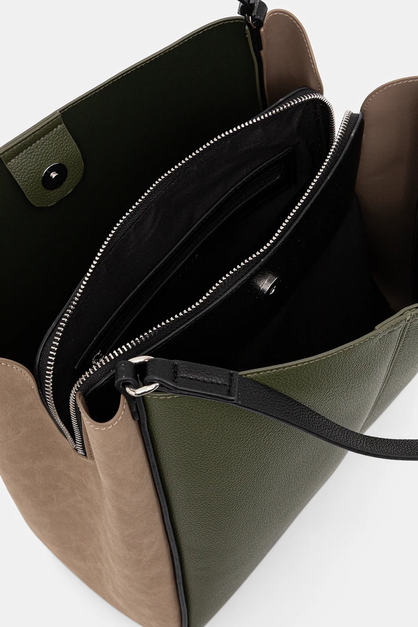 - Posiada trzy komory: jedna zapinana na suwak, dwie zapinane na magnes.