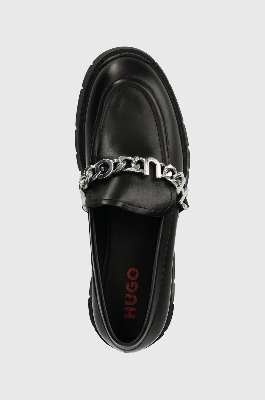 HUGO mokasyny skórzane Kris damskie kolor czarny na platformie 50513483