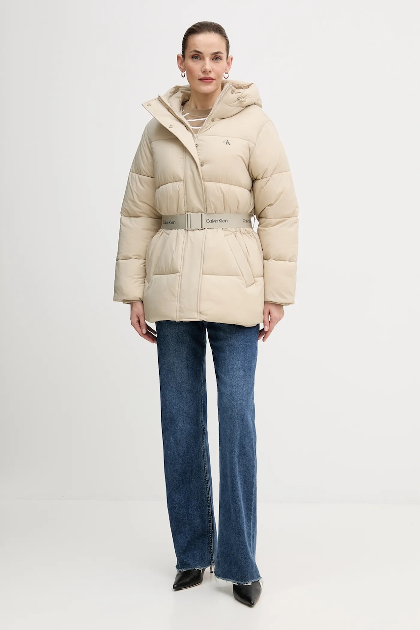 Calvin Klein Jeans kurtka kolor beżowy zimowa LV047D507G