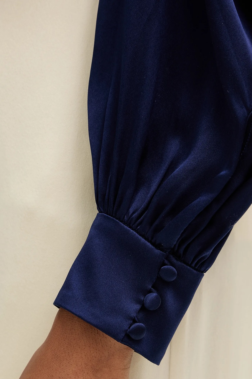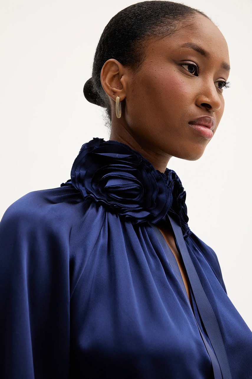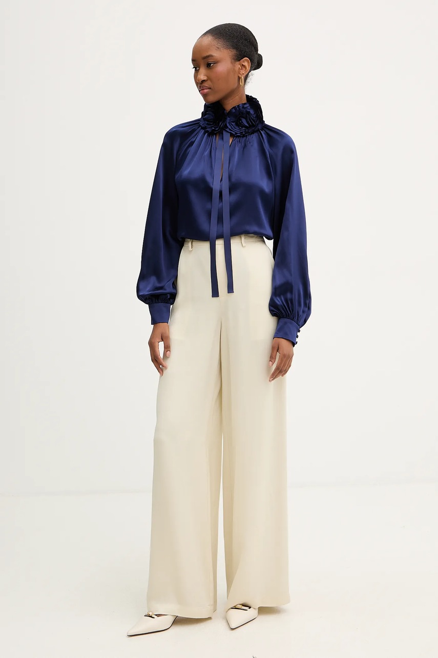 Luisa Spagnoli bluzka jedwabna damska kolor granatowy z aplikacją 542316