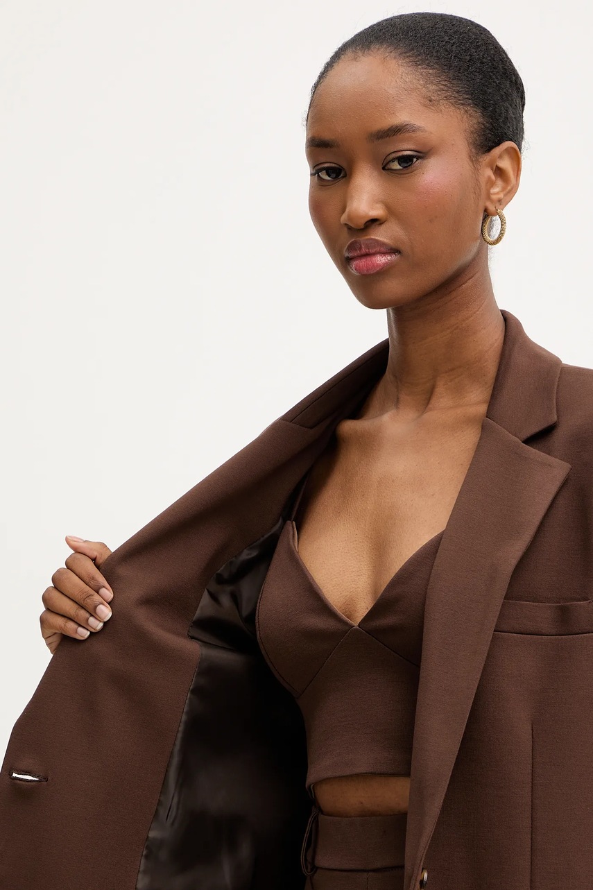 Haveone marynarka kolor brązowy jednorzędowa gładka JMI-P028