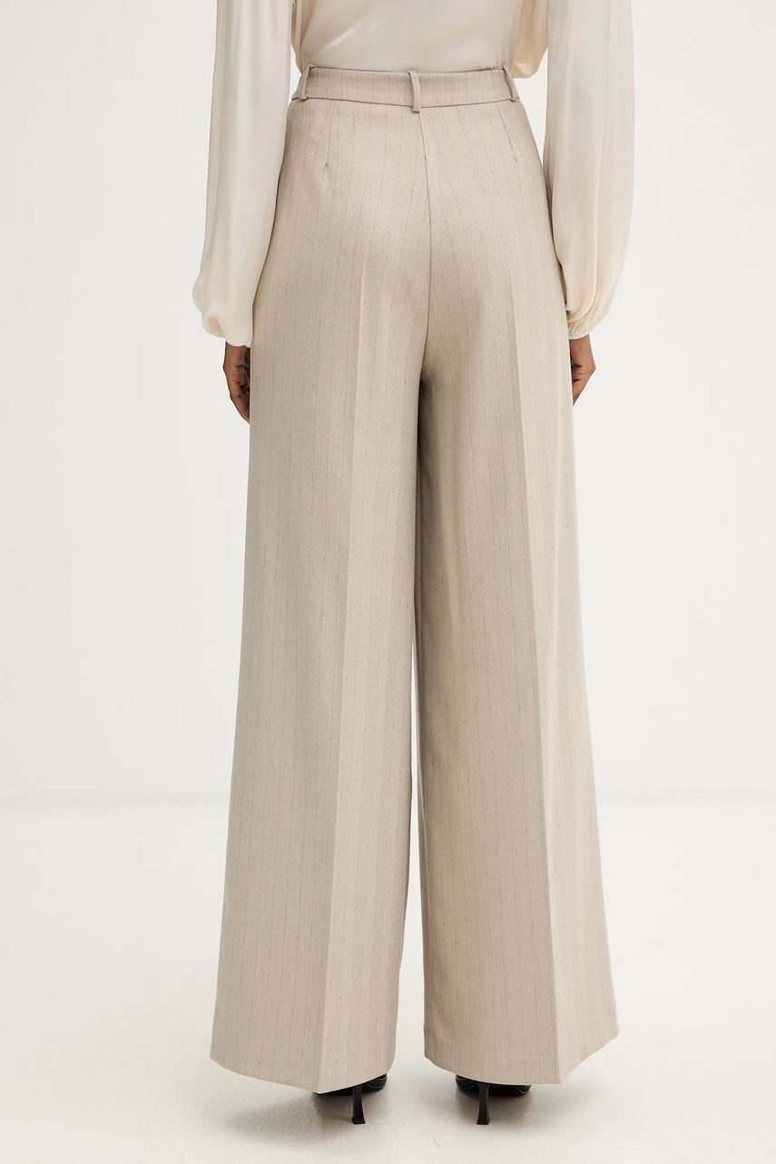 Haveone spodnie damskie kolor beżowy szerokie high waist PGE-P065