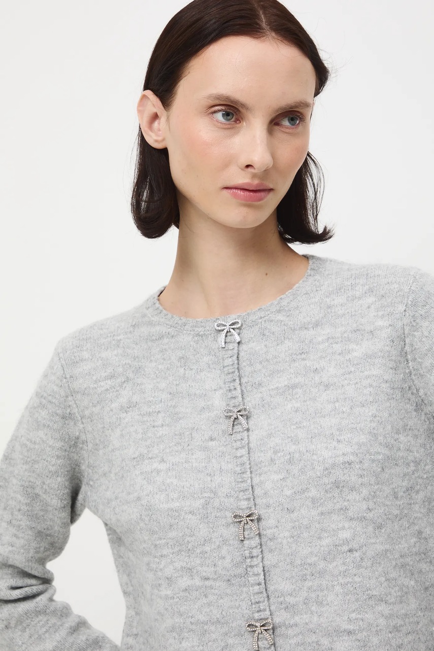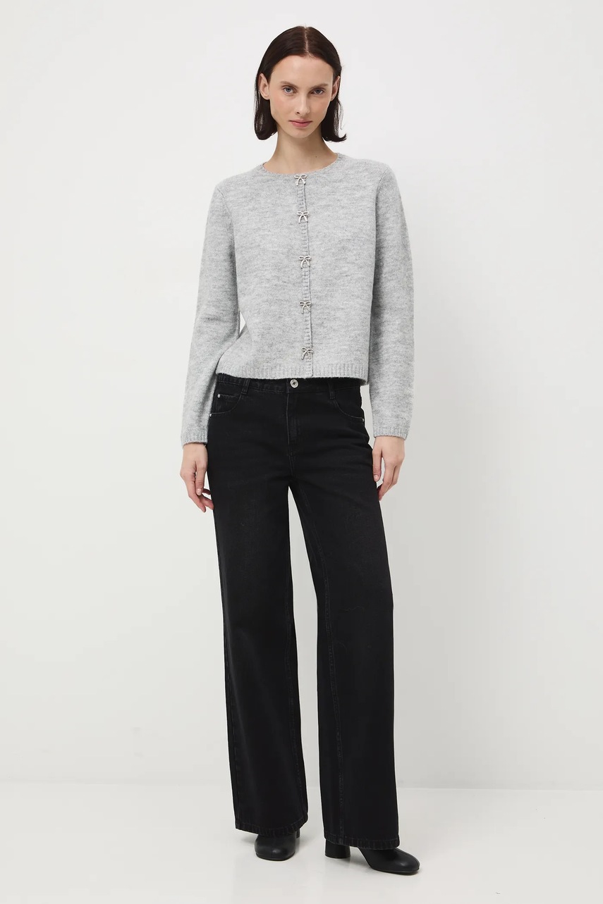 Medicine kardigan z domieszką wełny damski kolor szary lekki