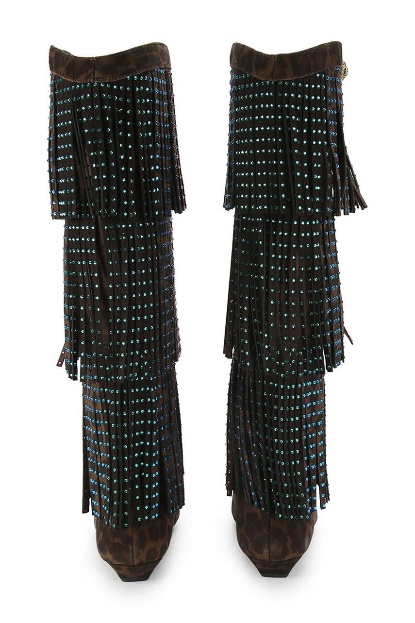 Kurt Geiger London kozaki zamszowe Western Fringe Pull On damskie kolor brązowy na małym obcasie 5030035289