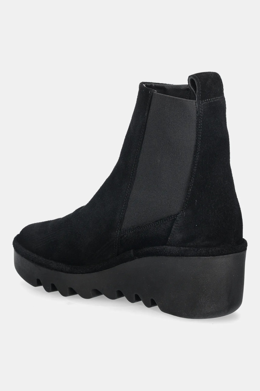 Fly London sztyblety skórzane BAGU233FLY damskie kolor czarny na koturnie P501233000