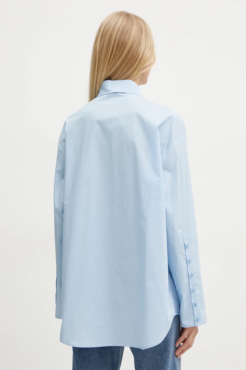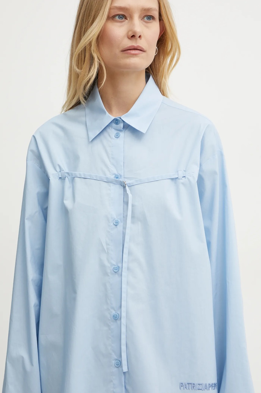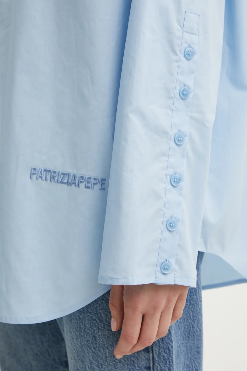 Patrizia Pepe koszula bawełniana damska kolor niebieski relaxed z kołnierzykiem klasycznym 8C0742 AH74