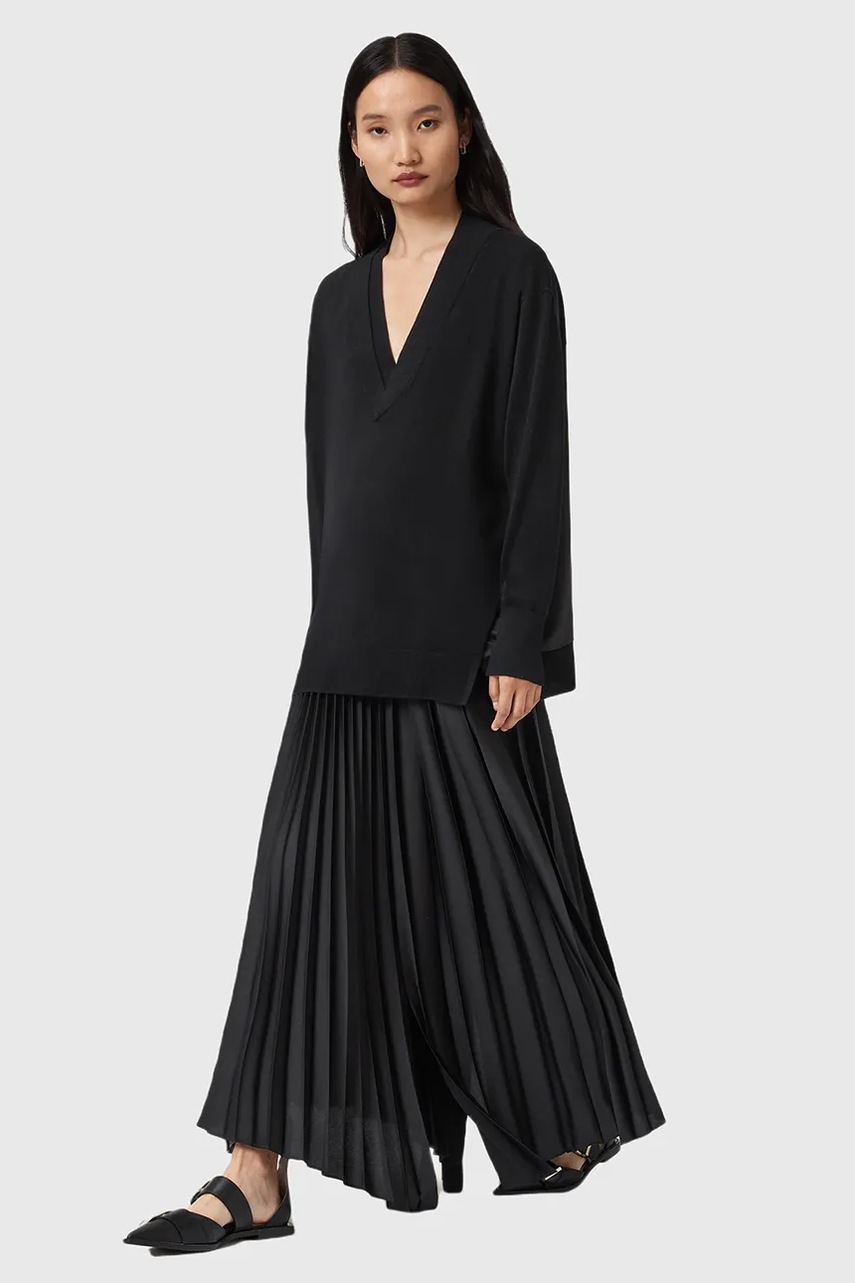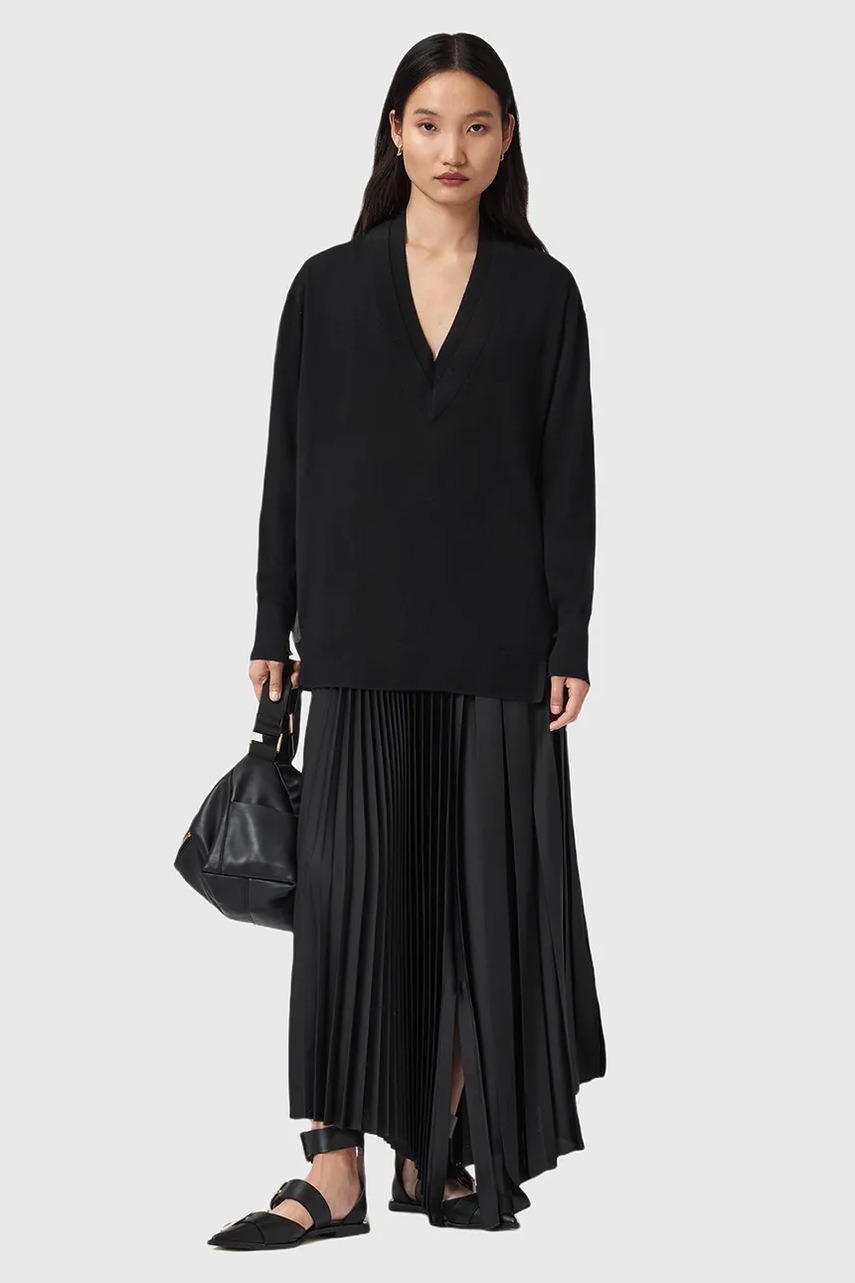 AllSaints sweter z dodatkiem wełny BERN damski kolor czarny lekki W050KD