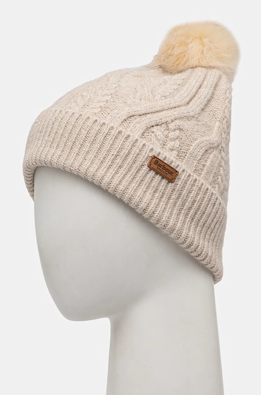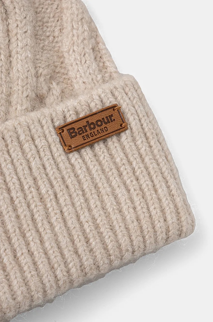 Barbour czapka kolor beżowy z grubej dzianiny LHA0555