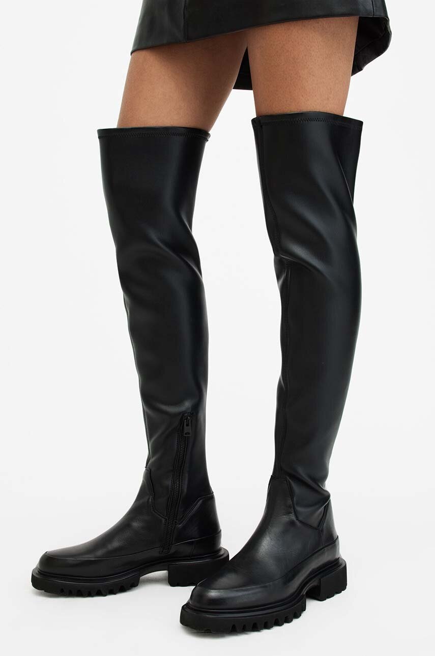 AllSaints kozaki skórzane Leona Boot damskie kolor czarny na płaskim obcasie W097FB