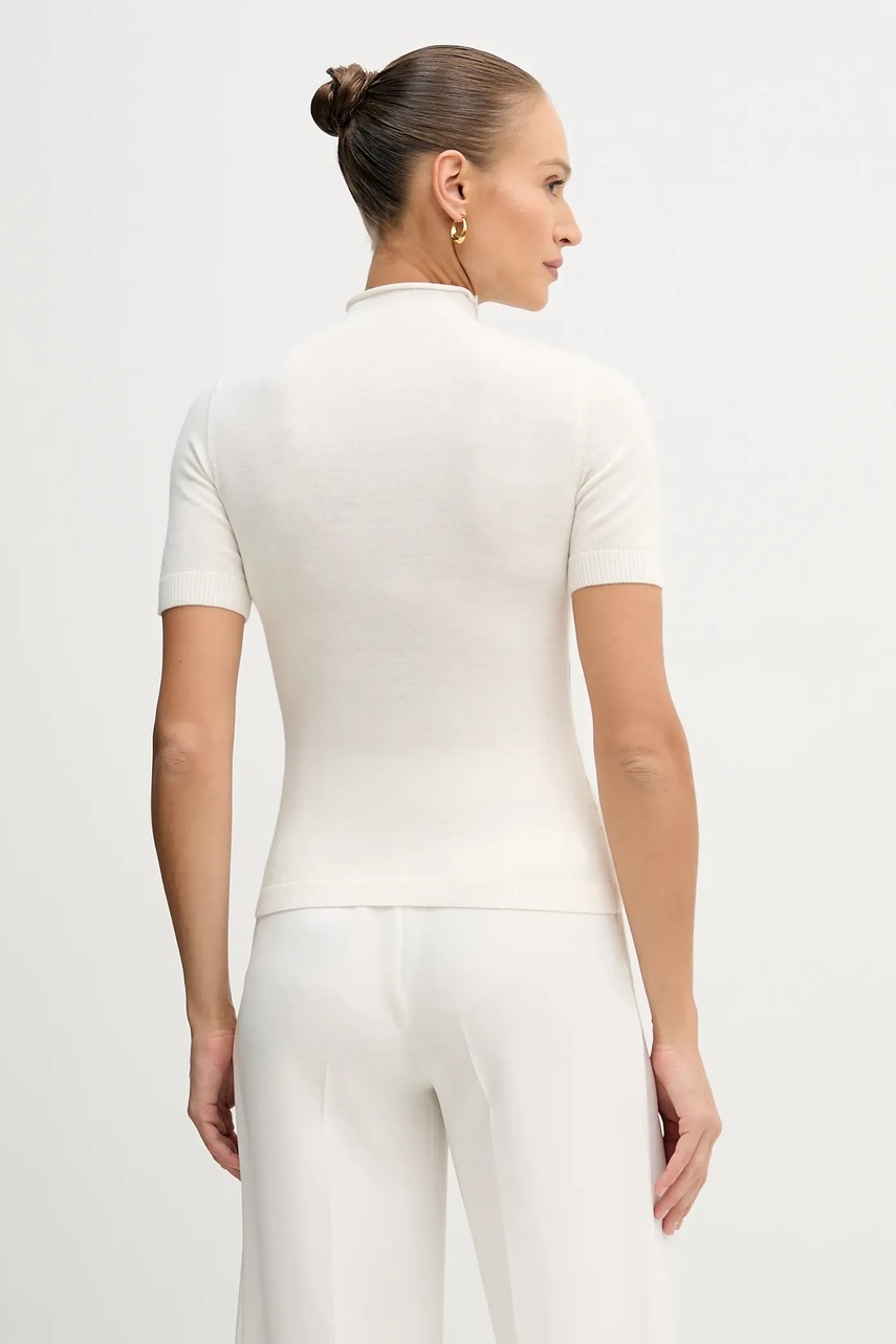 Sisley sweter z dodatkiem wełny damski kolor beżowy z półgolfem 11BAM105P