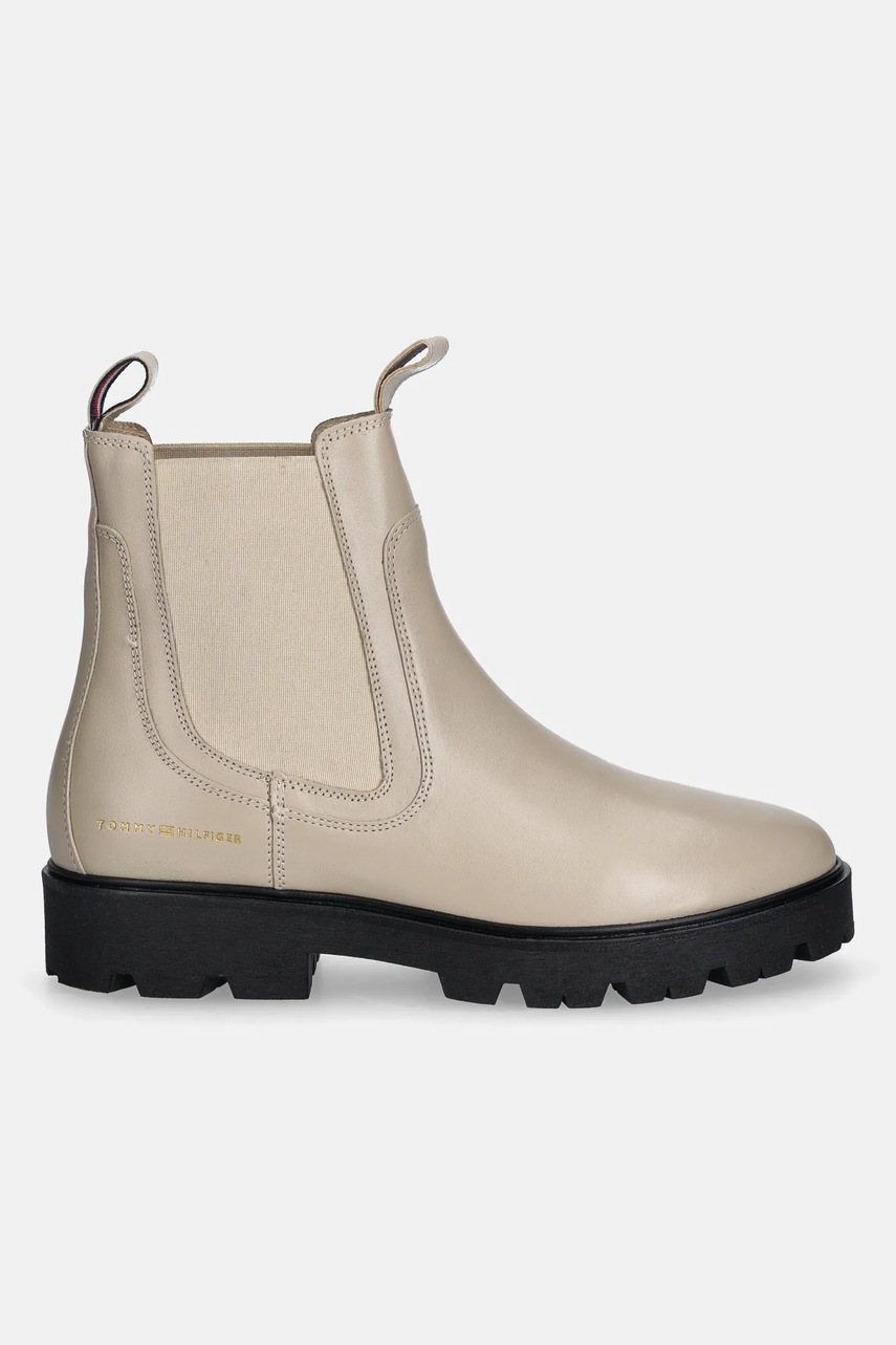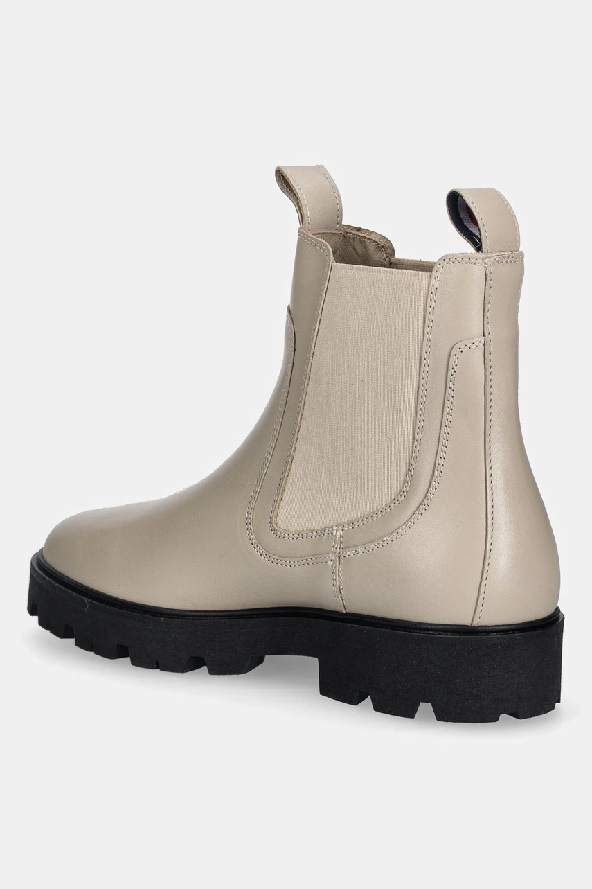 Tommy Hilfiger sztyblety skórzane TH LTHR LOW CHELSEA damskie kolor beżowy na płaskim obcasie FW0FW08775
