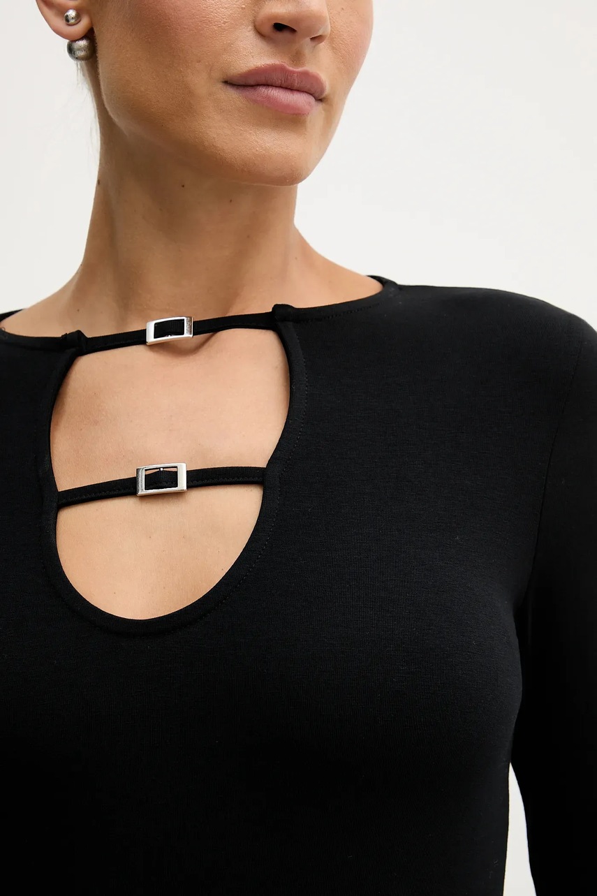 Sisley bluzka damska kolor czarny gładka 374SL108A