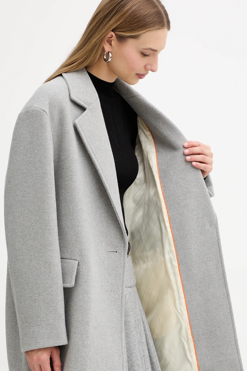 BOSS Orange płaszcz z dodatkiem wełny kolor szary 50548660