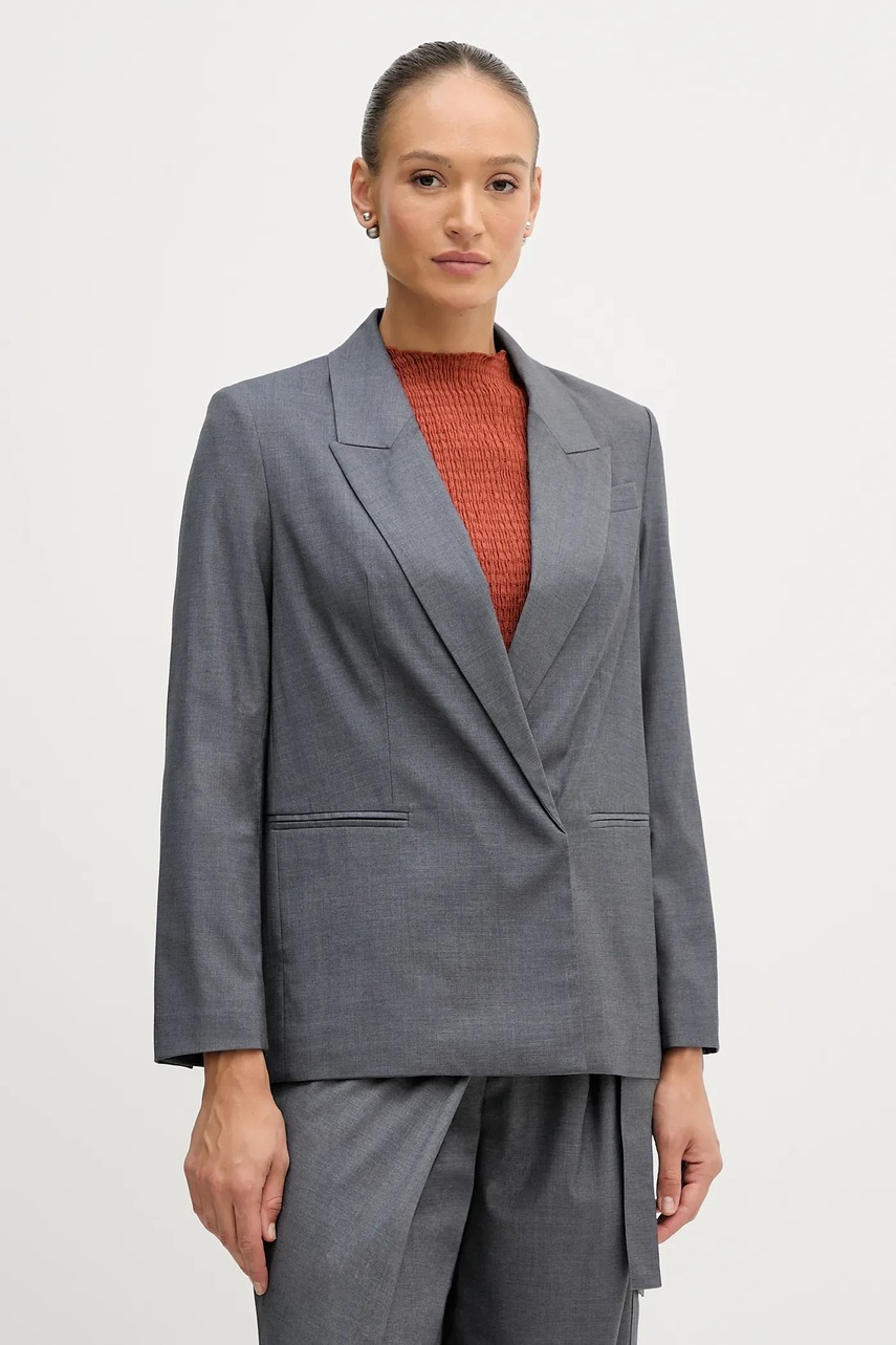 Sisley marynarka kolor szary dwurzędowa gładka 2K2KLW03C
