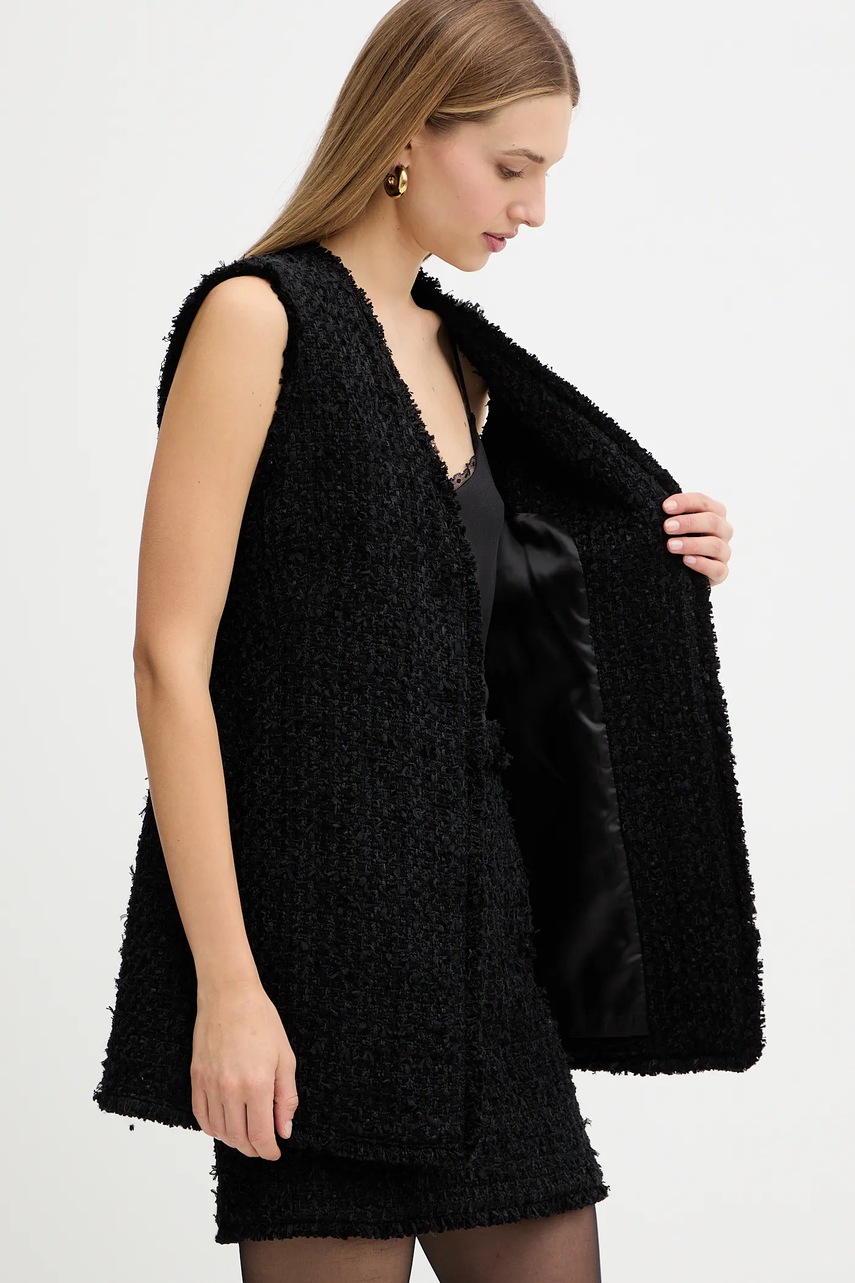 BOSS kamizelka z domieszką wełny kolor czarny jednorzędowa 50549128