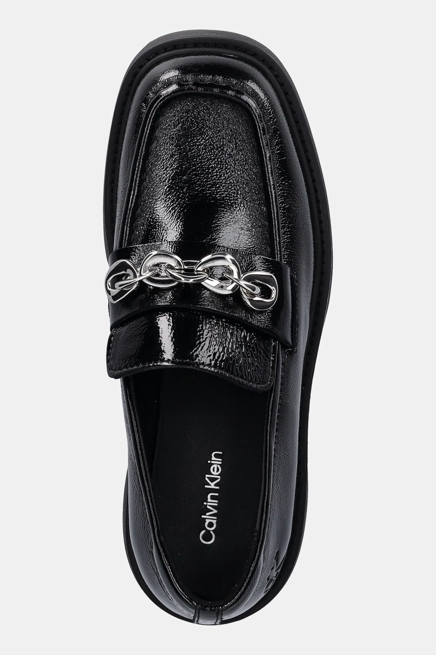 Calvin Klein mokasyny skórzane CHUNKY LOAFER HDW LTH damskie kolor czarny na platformie YW0YW02044