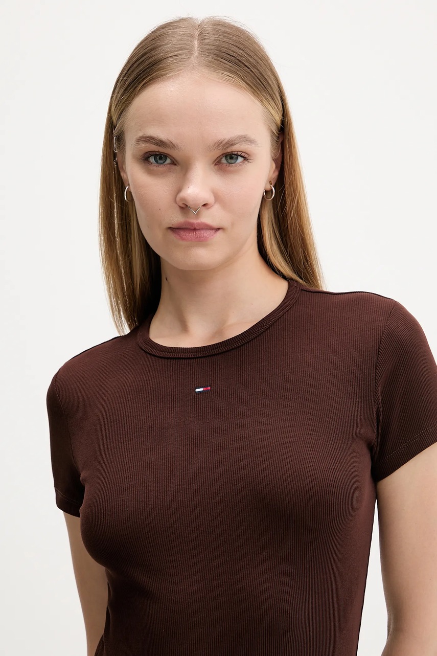 Tommy Jeans t-shirt damski kolor brązowy DW0DW17383