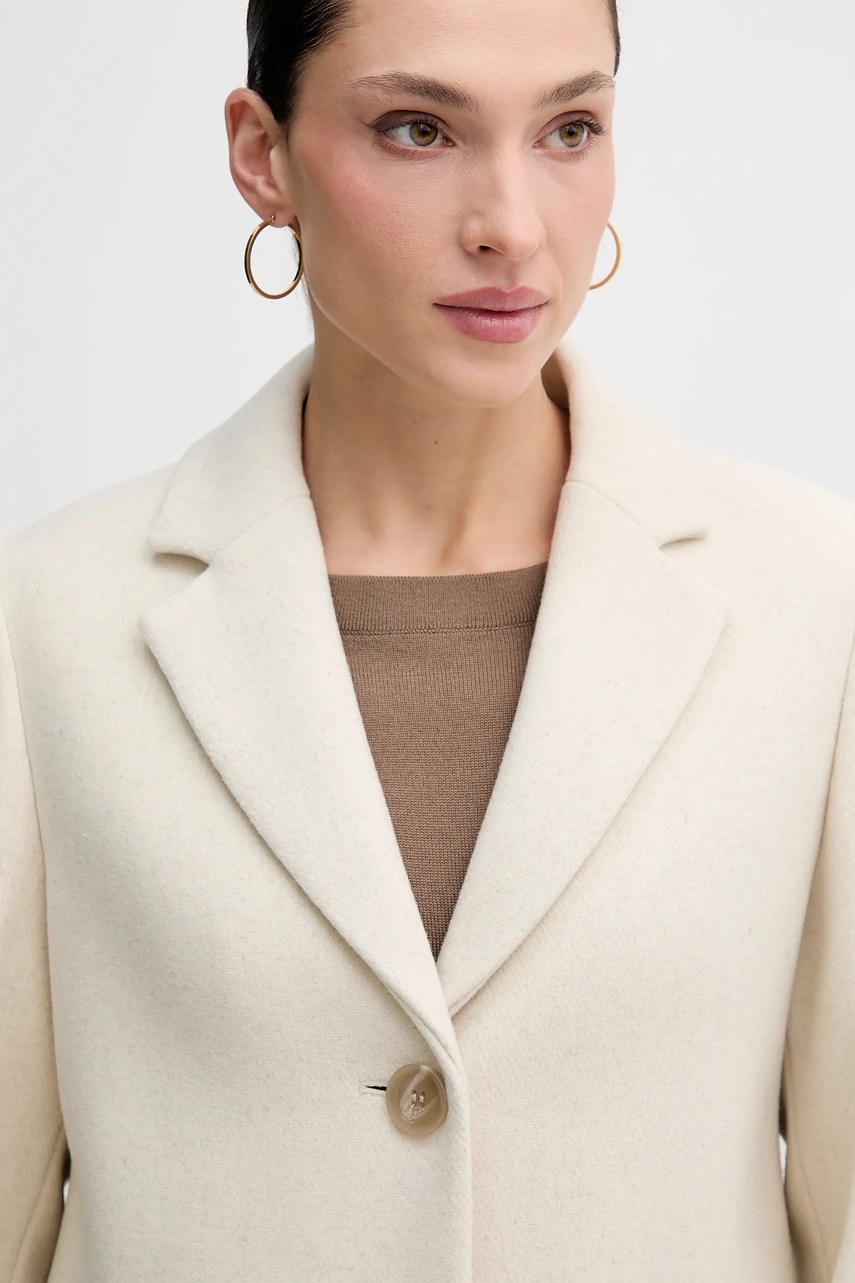 Sisley płaszcz wełniany kolor beżowy przejściowy 2JJYLN04N