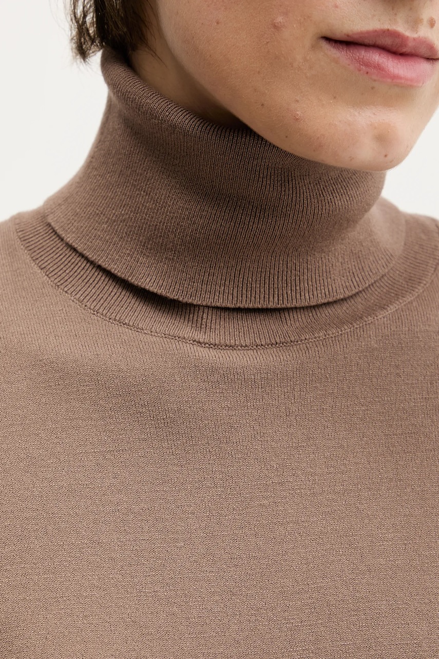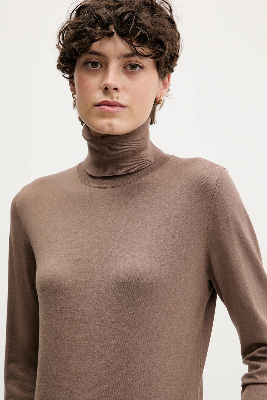 Sisley sweter damski kolor brązowy lekki z golfem 17Q3M2178