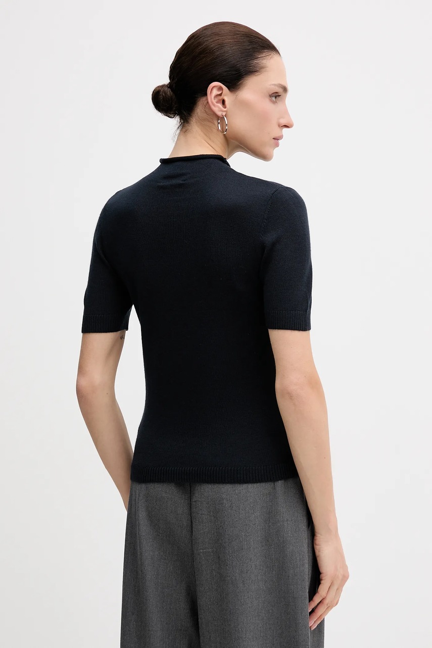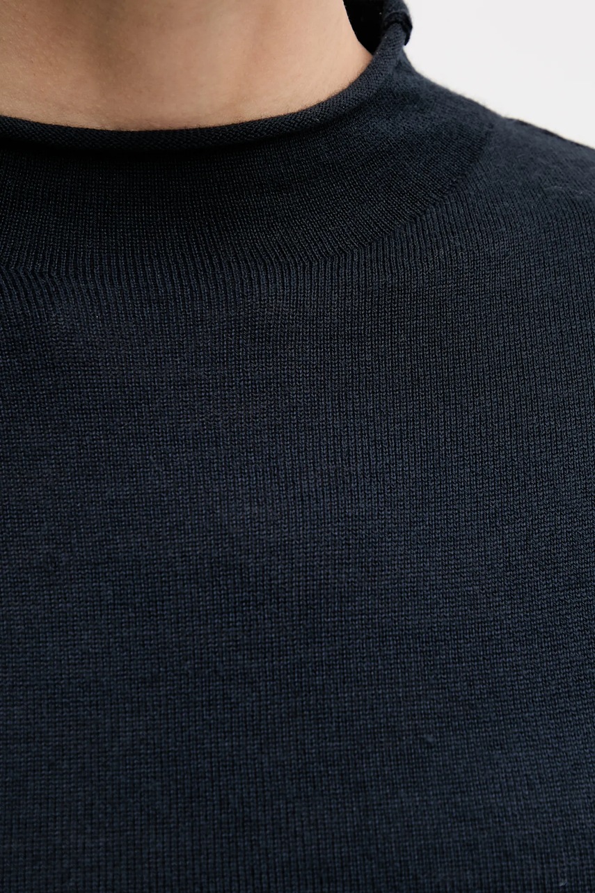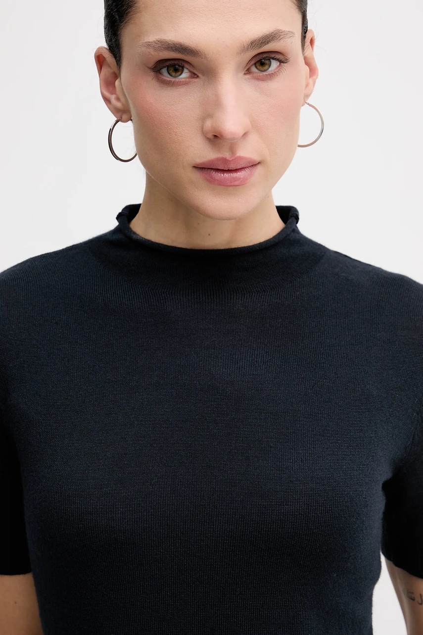 Sisley sweter z dodatkiem wełny damski kolor granatowy z półgolfem 11BAM105P