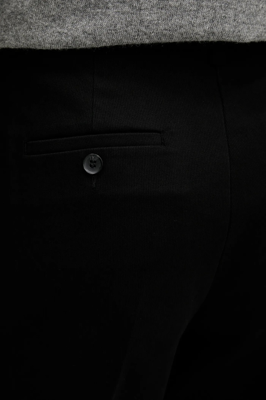- Model z regularną talią i zapięciem na suwak, guzik i haftkę.