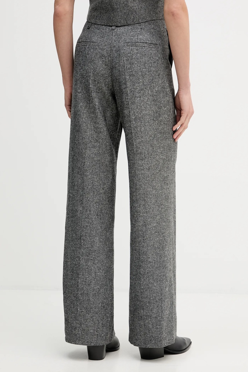 Pedro del Hierro spodnie z domieszką wełny damskie kolor szary proste high waist 7602535