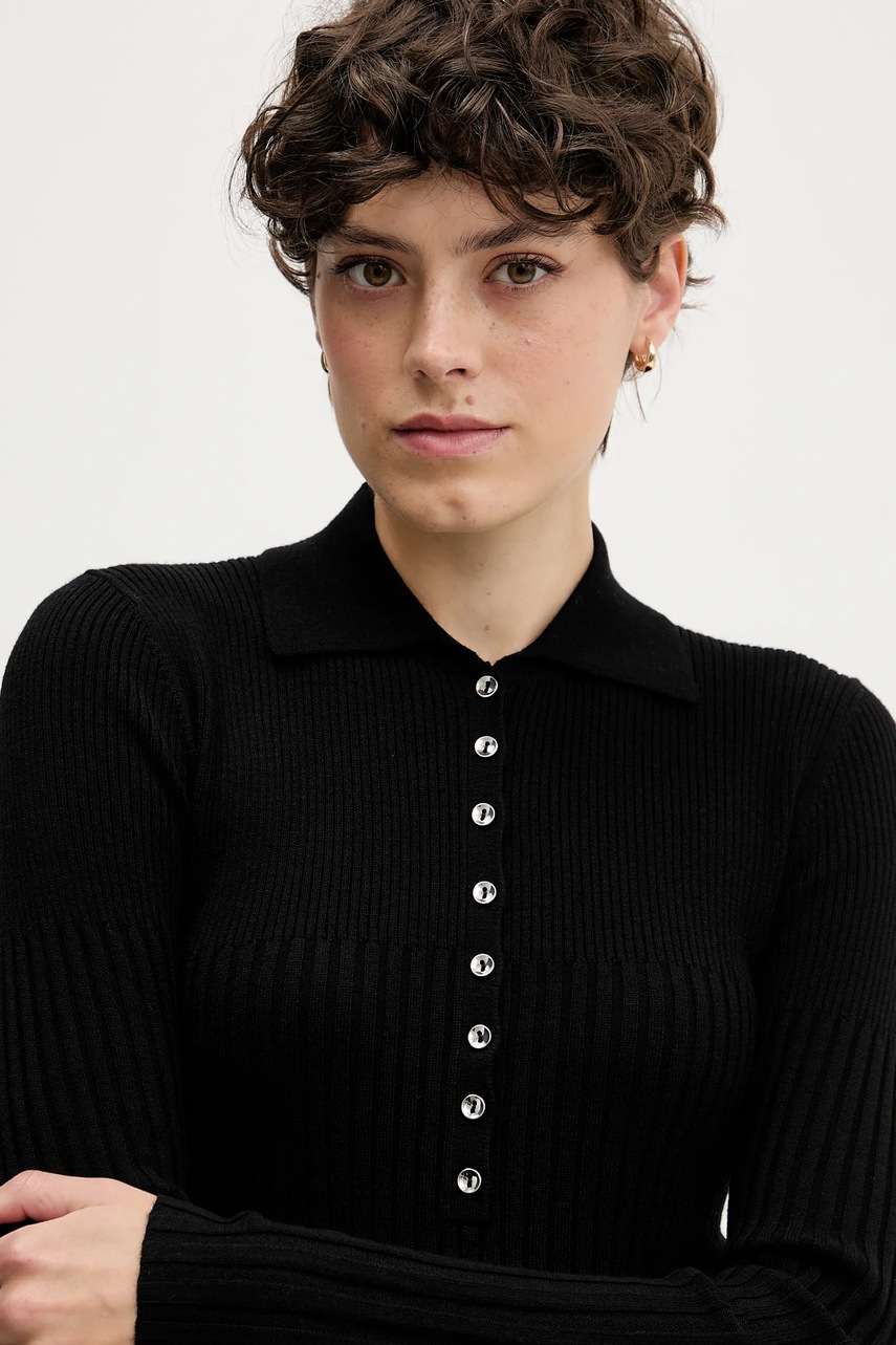 Sisley sweter z dodatkiem wełny damski kolor czarny lekki 1QNQL300E