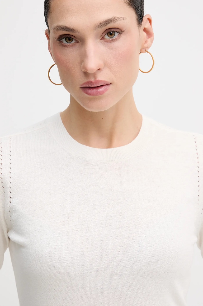 Sisley sweter z dodatkiem wełny damski kolor beżowy lekki 1SBXM106L
