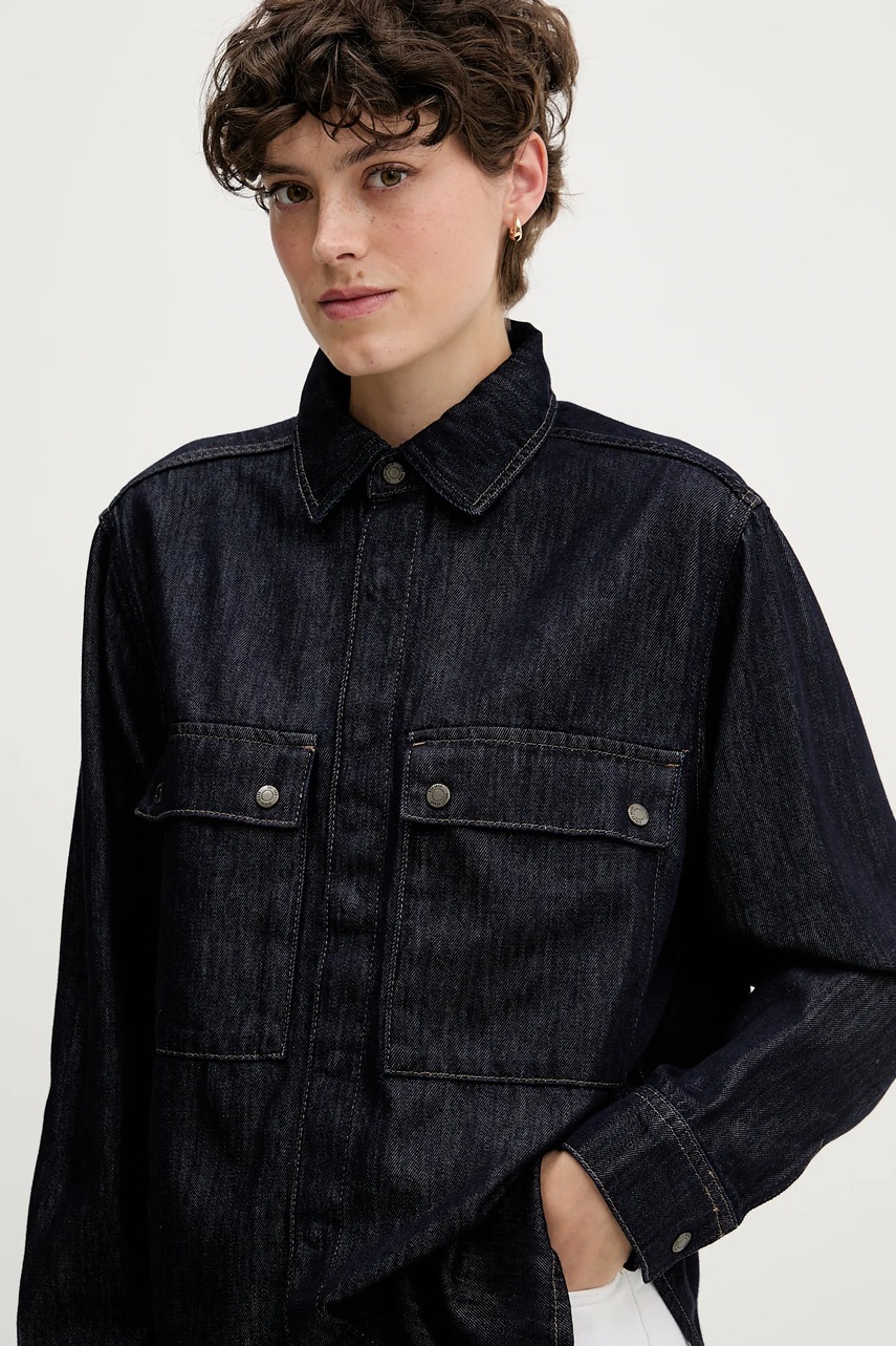 Sisley koszula damska kolor granatowy regular z kołnierzykiem klasycznym 547ZLQ09D