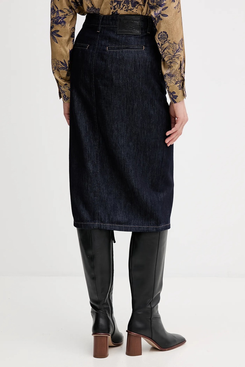 Sisley spódnica jeansowa kolor granatowy midi prosta 447ZL002U