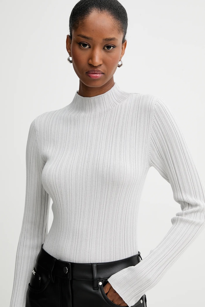 Calvin Klein Jeans sweter damski kolor szary lekki z półgolfem LV044D348G