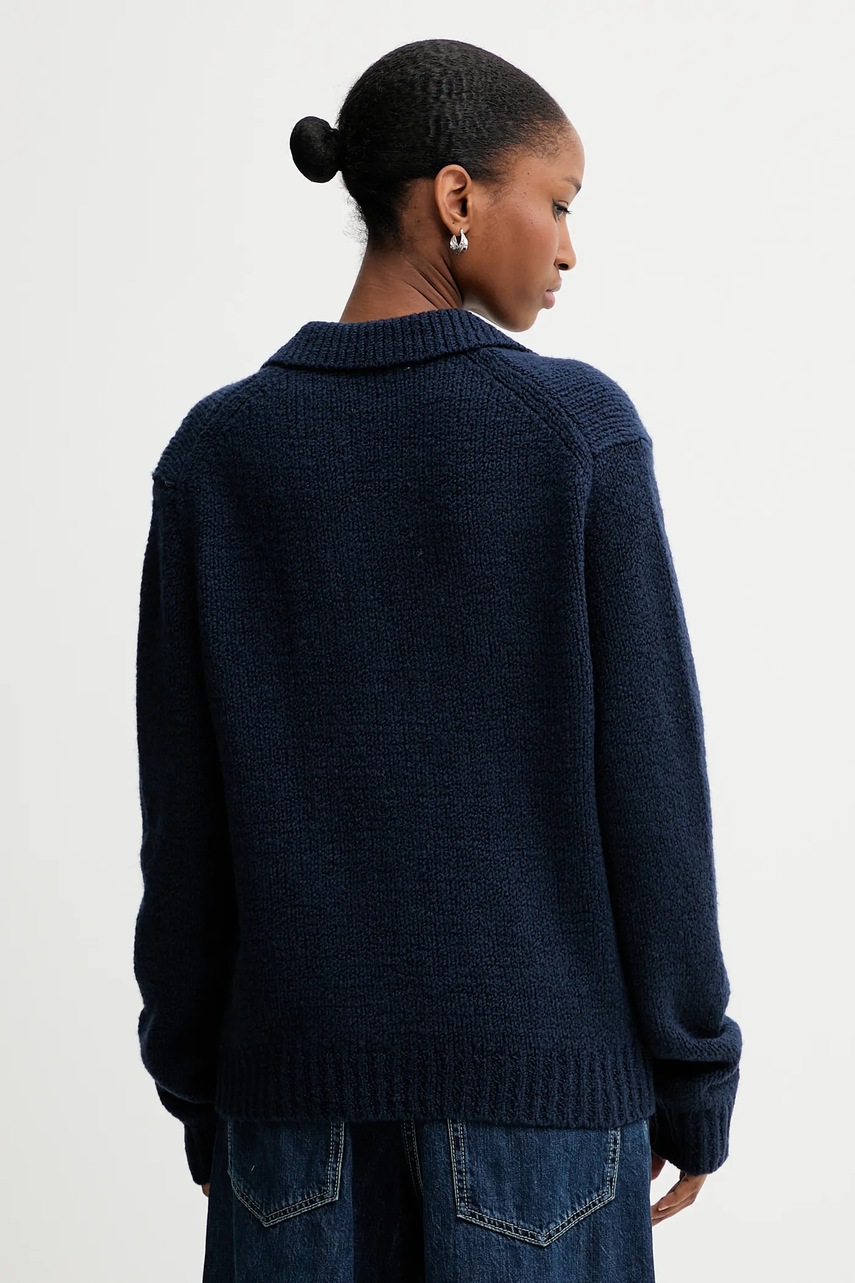 Calvin Klein Jeans sweter wełniany damski kolor granatowy ciepły LV144D341G