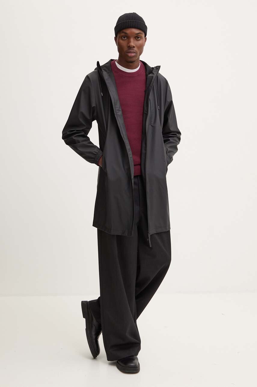 Rains kurtka Long Storm Breaker W3 kolor czarny przejściowa 12080-01
