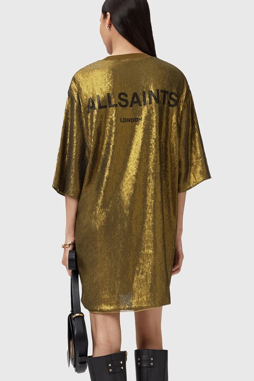 AllSaints sukienka OPAL LOGO DRESS kolor żółty mini oversize W185DB