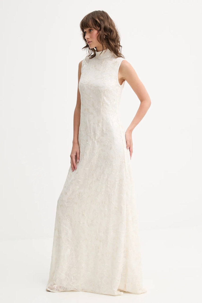 Rotate sukienka ślubna kolor beżowy maxi rozkloszowana 114196857