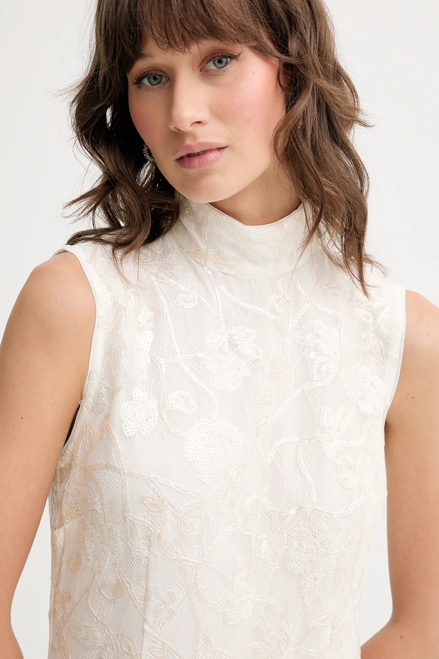 - Model z ozdobną aplikacją z cekinów.